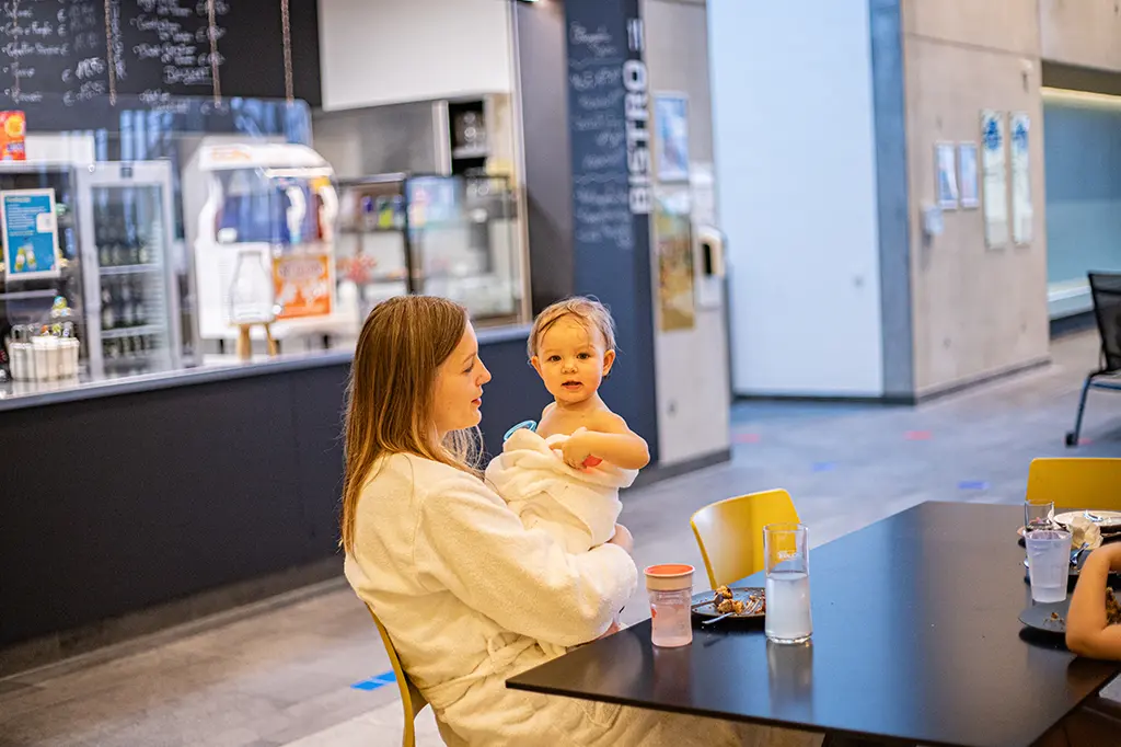 Unsere Gastronomie öffnet jeweils eine Stunde nach Öffnung des Freizeitbads.